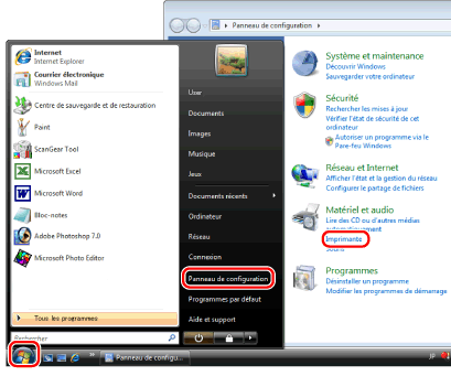 ] (Démarrer) → [Panneau de configuration] → [Imprimante].