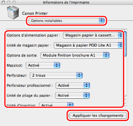 Il est important de ne sélectionner que les options réellement installées sur l'imprimante.