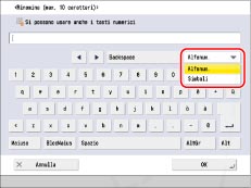 Se si immettono spesso testi composti di lettere maiuscole (ad es., AAAAA BBBBB CCCCC), selezionare [On] per [Utilizzo funzionalità Bloc Maiusc tastiera] in [Preferenze] (Impostazioni/Registrazione). (Vedere "Modifica delle impostazioni della funzionalità Bloc Maiusc tastiera".)