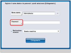 Anche se al termine delle operazioni si dimentica di eseguire la disconnessione, allo scadere del tempo specificato viene rivisualizzata automaticamente la schermata di immissione del nome utente e della password. (Vedere "Intervallo ripristino automatico".)