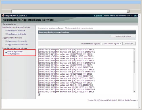 Premere [Impostazioni gestione software] → [Selezione visualizzazione registro] → [Visualizzaz. registri aggiornam.].