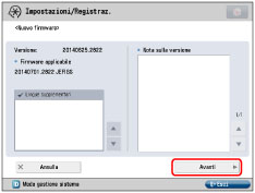 È possibile verificare il nuovo firmware applicabile alla macchina e indicare le impostazioni di distribuzione.