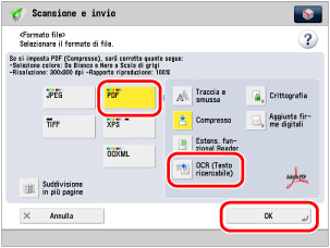 Selezionare [PDF] → [OCR (Testo ricercabile)] → [OK].