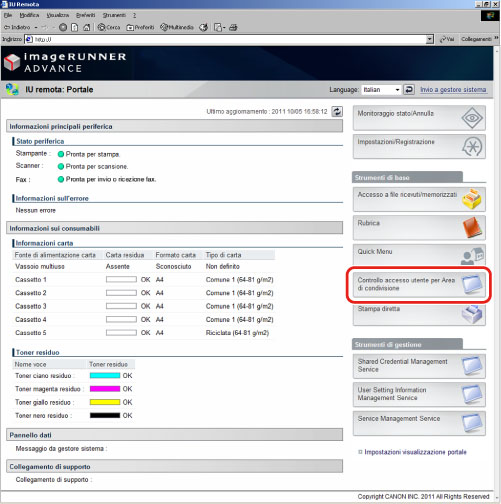 Fare clic su [Controllo accesso utente per Area di condivisione] dall'applicazione nella schermata del portale.