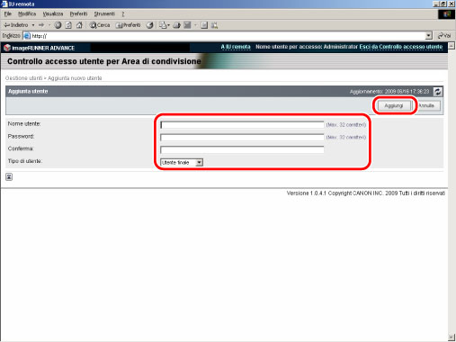 Registrazione delle informazioni dell'utente" → premere [OK].