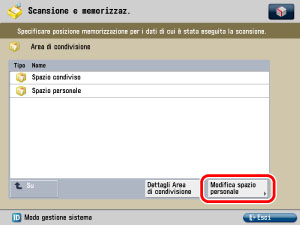 Premere [Scansione e memorizzaz.] o [Accesso a file memor.] nella schermata del menu principale → premere [Area di condivisione].