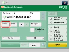 Digitare il numero di fax internazionale → selezionare [Pausa].