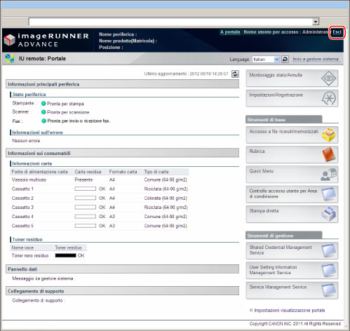 Per informazioni sui requisiti di sistema per l'IU remota e le operazioni preliminari necessarie per avviarla, vedere "Requisiti di sistema" e "Prima di utilizzare l'IU remota".