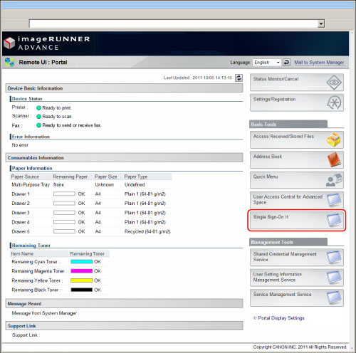 Per accedere dal portale della IU remota, impostare [IU remota] in [Licenza/Altro] in [Impostazioni gestione] (Impostazioni/Registrazione) su 'On'. (Vedere "Prima di utilizzare l'IU remota".)