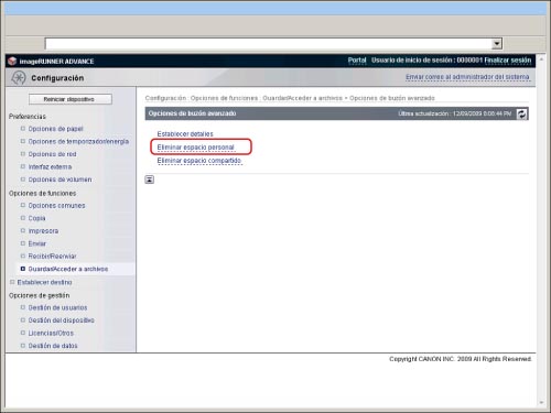 È possibile eliminare solo singoli spazi personali dall'IU remota.