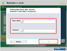 Utilizza le informazioni di autenticazione impostate in [Registrazione server LDAP]. (Vedere "Registrazione di un server LDAP".) Non sono richieste ulteriori impostazioni per ciascun utente.
