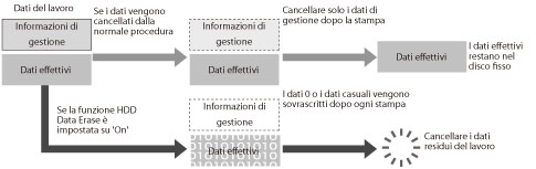 La macchina separa e memorizza i dati relativi ai lavori durante la copiatura, l'invio, la ricezione e la stampa in informazioni di gestione e dati correnti. Le informazioni di gestione vengono cancellate automaticamente al termine del lavoro, ma i dati correnti vengono memorizzati nel disco fisso.