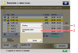 Utilizzare questo tasto per eliminare il file selezionato o modificare il nome file.