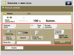 È possibile acquisire e memorizzare fino a 999 pagine contemporaneamente. Se gli originali fronte-retro vengono acquisiti con l'alimentatore, è possibile memorizzare fino a 1.000 pagine. Quando viene raggiunto il numero massimo di originali acquisibili, viene visualizzato un messaggio che chiede se memorizzarli.