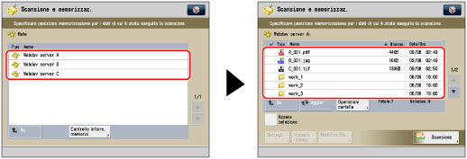 Per utilizzare la posizione di memorizzazione di rete, è necessario impostarla in anticipo in base alle necessità. Per ulteriori informazioni, vedere "Impostazioni dell'Area di condivisione/Rete".
