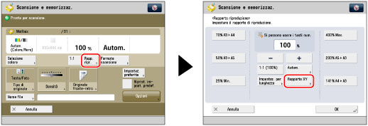 Se non si desidera modificare il rapporto di riproduzione orizzontale e verticale, selezionare [Stesso rapporto XY]. Per modificare il rapporto di riproduzione, selezionare [XY indipendenti].