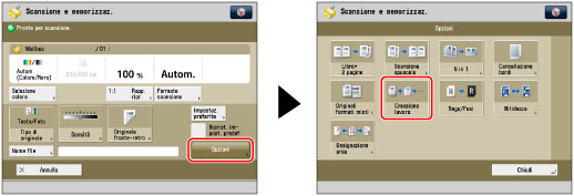 Possono essere variate solo le impostazioni visualizzate in [Variaz. impost.] nel modo Creazione lavoro. Specificare in anticipo le impostazioni di scansione necessarie.
