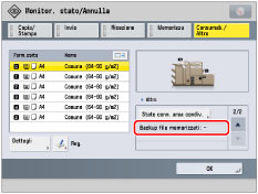 Nella tabella riportata sotto è indicato lo stato del backup.