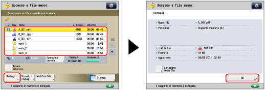 Selezionare il file desiderato → premere [Dettagli] → [OK].