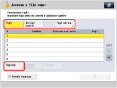 Se per il foglio di separazione si seleziona [Lascia in bianco], è possibile impostare la stessa pagina per il foglio di rubrica. In questo caso, prima viene stampata la carta per il foglio di separazione, poi il foglio di rubrica.