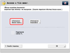 In questa sezione sono descritte le impostazioni del Blocco scansione documento mediante un codice TL.
