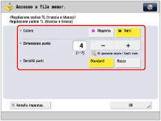 È possibile regolare le dimensioni, la densità e il colore dei punti del codice TL da includere nella stampa.