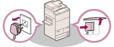 Bei Rauch- oder ungewöhnlicher Geräuschentwicklung schalten Sie das System bitte sofort am Hauptschalter aus, ziehen den Netzstecker und nehmen Kontakt zu Ihrem Canon-Vertriebspartner auf. Wenn Sie das System in diesem Zustand benutzen, kann es zu Feuer oder elektrischem Schlag kommen. Lassen Sie bitte vor der Steckdose genug Platz, damit Sie leicht an den Netzstecker kommen.