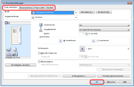 Nähere Informationen zu den verfügbaren Druckfunktionen finden Sie unter "Druckfunktionen" oder in der Online-Hilfe (vgl. Anzeigen der Online-Hilfe").