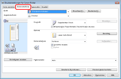Die Anzeige kann sich je nach Betriebssystem sowie Typ und Version des Druckertreibers unterscheiden.