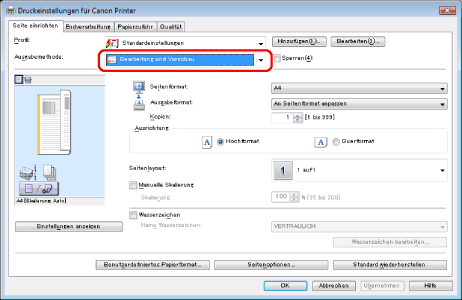 Wählen Sie unter [Ausgabemethode] die Option [Bearbeitung und Vorschau].