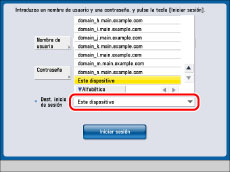 Los nombres de los dominios o los nombres de servidor del servidor LDAP que permiten la autenticación de usuarios se muestran en la lista desplegable <Dest. inicio de sesión>.