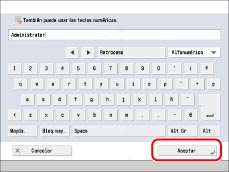 Para más información acerca del nombre de usuario utilizado para el sistema de autenticación de usuarios 'Autenticación de servidor' de SSO-H (incluido cuando se realiza la autenticación de servidor con el sistema de autenticación de usuarios 'Autenticación de servidor + Autenticación de dispositivo local'), consulte al administrador de red (NetworkAdmin).
