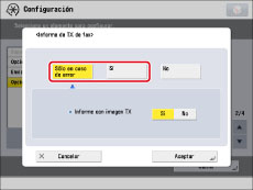 Si desea imprimir parte del documento enviado en el informe de TX de fax, pulse [Sí] para <Informe con imagen TX>.