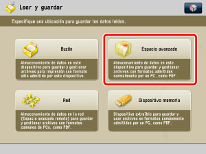 → [Opciones de funciones] → [Guardar/Acceder a archivos] → [Opciones de espacio avanzado] → [Prohibir escritura desde fuera].