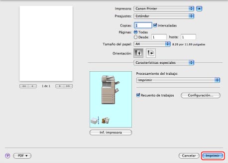 Seleccione la impresora que desea utilizar → seleccione [Características especiales].