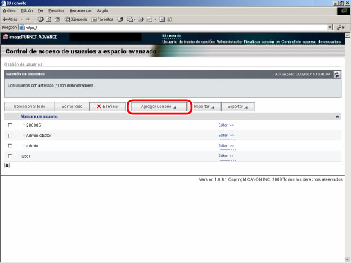 Aparece la página [Gestión de usuarios].
