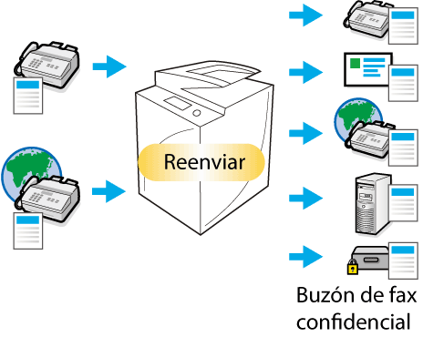 imageRUNNER ADVANCE permite transferir los documentos de fax recibidos a diversos destinos. Para configurar los parámetros de transferencia, registre el destino y las condiciones de transferencia. Puede especificar como destino una carpeta compartida en la red. Para obtener información detallada sobre los parámetros de transferencia, consulte el e-manual de imageRUNNER ADVANCE.