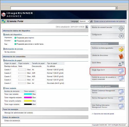 Debe estar establecido SSO-H como servicio de inicio de sesión. (Para más información, consulte "Selección de servicio de inicio de sesión".)