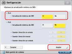 Puede guardar automáticamente la dirección IPv4, el nombre de host y el nombre de dominio establecidos para el equipo en el servidor DNS mediante la actualización dinámica de DNS. Se requiere un servidor DNS dinámico para usar la actualización dinámica de DNS.