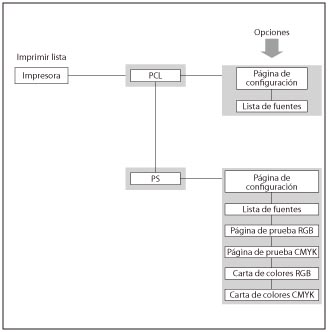 Como ejemplo, en las siguientes páginas aparece la secuencia de pasos para imprimir una Página de configuración.