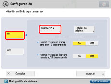 Si se activa la gestión de ID de departamentos por medio del Lector de Tarjetas de Copia F1, no es posible guardar o eliminar los ID de departamentos.
