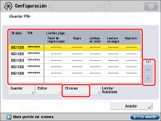 o , puede desplazarse rápidamente y de forma continua por las páginas de los ID de departamentos disponibles. Cuando aparezca la página que desea, suelte las teclas. El desplazamiento continuo es útil cuando hay un gran número de ID de departamentos registrados. |