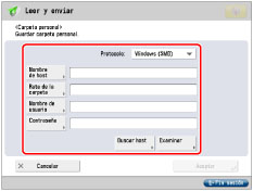 Puede registrar la información de usuario desde  en la pantalla Funciones básicas de [Leer y enviar], la pantalla Funciones básicas de [Archivos guardados], y la pantalla Enviar de [Buzón de fax/I-fax].