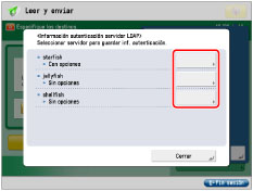 Utiliza la información de autenticación establecida en [Guardar servidor LDAP]. (Consulte "Guardar un servidor LDAP".) No se requieren más ajustes para cada usuario.