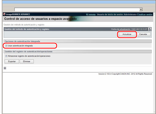 Puede establecer [Usar autenticación integrada] en los casos siguientes: