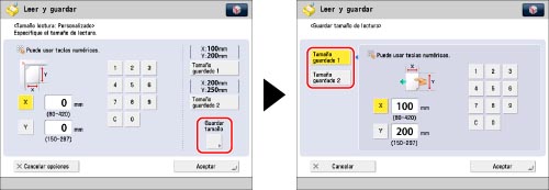 Puede especificar manualmente un tamaño de lectura al leer originales que no pueden detectarse con [Auto]. También puede guardar el tamaño de lectura especificado.