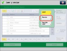 [Cambiar libr. direc.] sólo aparece si guarda tanto la libreta de direcciones remota como el servidor LDAP. Si sólo guarda la libreta de direcciones remota en el equipo, aparece [Libr. direc. remota].