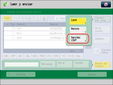 [Cambiar libr. direc.] sólo aparece si guarda tanto la libreta de direcciones remota como el servidor LDAP. Si sólo guarda el servidor LDAP en el equipo, aparece [A servidor LDAP].