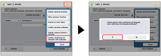 → [Cambiar condiciones de búsqueda LDAP prefijadas] → [Sí].