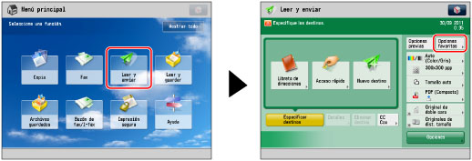 Pulse [Leer y enviar] → [Opciones favoritas].